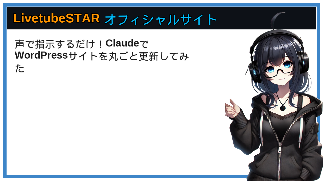 今日は正直、自分でもびっくりした体験をシェアしたくて記事を書いています。タイトルの通り、このサイトの設定・ページ作成・細かいカスタマイズを、全部Claudeに声で指示するだけで完結させてしまいました。